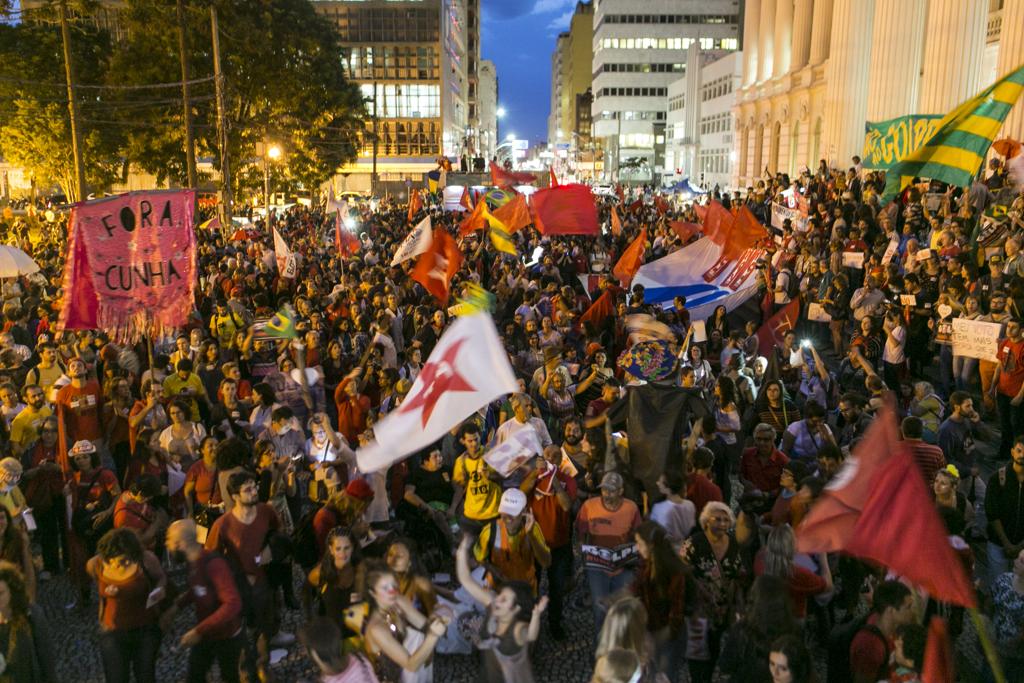 Cerca de 1,5 mil pessoas, segundo a Polícia Militar (PM), participam de ato a favor da presidente Dilma Rousseff e contra o impeachment em Curitiba nesta quinta-feira (31) na Praça Santos Andrade, no centro de Curitiba. Segundo os organizadores, 5 mil pessoas participaram do ato.