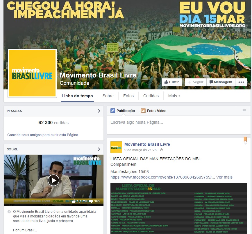 É comum nestas páginas ver o ex-presidente Luiz Inácio Lula da Silva ser chamado de ‘lularápio’ e Dilma Rousseff de ‘presidanta’. Na página “impeachment para a presidenta Dilma”, há um post pedindo a renúncia e dizendo que a petista não tem “um pingo de vergonha na cara”. Há depoimentos de artistas como os músicos Roger, Paulo Ricardo e Mr. Catra, e a apresentadora Sonia Abrão, todos contra a presidente Dilma e o PT.