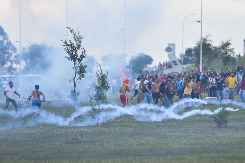 Para conter os manifestantes, a polícia usou bombas de efeito moral e gás lacrimogêneo. Pelo menos seis policiais ficaram feridos. Manifestantes também sofreram ferimentos e dois acabaram presos.