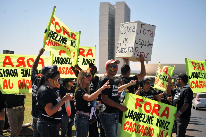 Os pedidos de punição para a deputada estão espalhados por toda a Esplanada dos Ministérios. Diversas faixas pedindo a cassação de Jaqueline e o fim da corrupção no Congresso podem ser vistas por todo o gramado. O asfalto do Eixo Monumental, via onde ficam os ministérios e o Congresso, foi pintado com a frase "Fora Jaqueline Roriz".