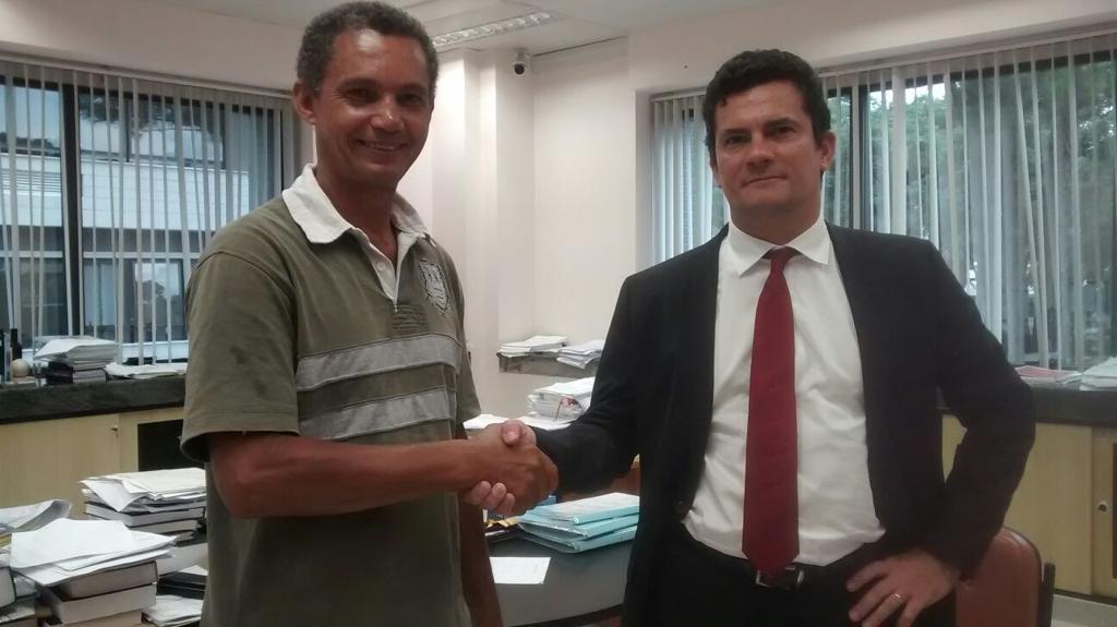 No dia 26 de janeiro, Moro abriu-lhe as portas de seu gabinete, no segundo andar da sede Justiça Federal. Depois da insistência da singular figura, que queria conhecer o popular magistrado, Moro o recebeu por alguns minutos para uma troca de palavras. “Batemos um papo informal de mais ou menos dez minutos”, disse o mineiro. “Elogiei o trabalho dele, perguntei se ele tinha se formado nos Estados Unidos, ele disse que não. E falei da importância que tem sido o trabalho dele.”, disse Rhouglas.