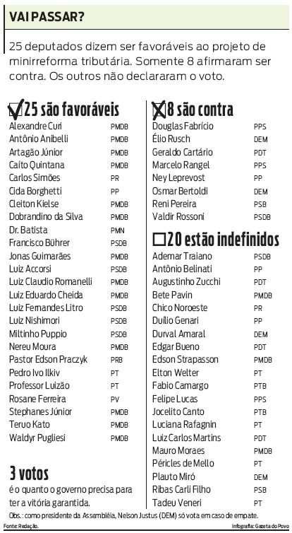 O projeto de lei será encaminhado para votação na Comissão de Finanças às 13h30 de quarta-feira (10) e em seguida, horário previsto para as 14h30, irá para votação no plenário, segundo informações do diretor legislativo Romero Sottomayor.