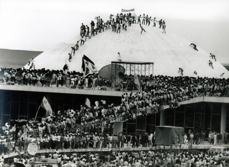 Apesar de definida pelo Colégio Eleitoral, a eleição que colocou fim a duas décadas de governos militares começou a ser decidida nas ruas. Durante três meses, de janeiro a abril de 1984, milhões pediram nas ruas para o Congresso aprovar a emenda que reinstituía as eleições diretas para presidente a última havia sido em 1960, quatro anos antes do golpe militar. A emenda recebeu o nome de seu autor, o então deputado Dante Oliveira (PMDB-MT). No dia 16 de abril de 1984, em São Paulo, no maior ato público da história do país, cerca de 1,5 milhão de pessoas pediram a volta das eleições.