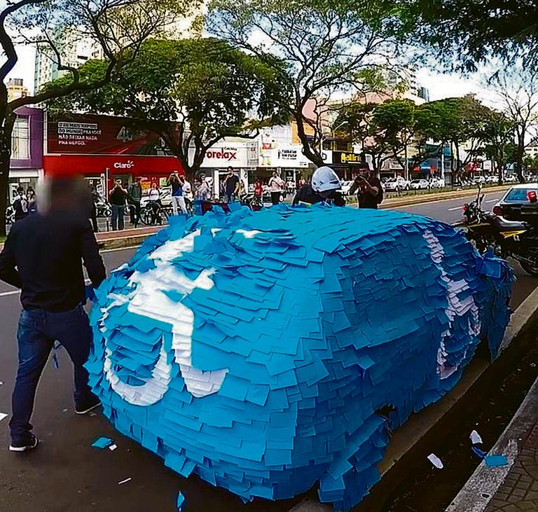 Em três dias, dois milhões de pessoas assistiram no YouTube a uma “pegadinha” feita por um grupo de Maringá. No vídeo, um carro deixado em cima de uma vaga para deficientes era recoberto de adesivos que formavam uma imagem gigante de um cadeirante, igual à que marcava no asfalto o fato de que aquele motorista não deveria estar ali. Ao sair do prédio, o motorista, irado, arranca alguns dos papéis e parte com o automóvel cantando pneus.
