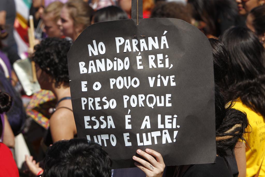 A jovem relatou os detalhes da prisão em depoimento ao promotor de Direitos e Garantias Constitucionais de Londrina, Paulo Tavares, na tarde de quarta-feira (6). Ela disse que, após ser detida, foi trancada com duas policiais militares em uma sala do Palácio Iguaçu, sede do governo estadual. “Ela contou ao Ministério Público que as policiais eram do sexo feminino e a despiram completamente. Em seguida, começaram a empurrar a garota e a insultá-la com palavras como vagabunda, comunista e petista”, contou o advogado e professor do curso de Direito da UEL, César Bessa. Ele acompanhou o depoimento da jovem e dos outros três alunos.