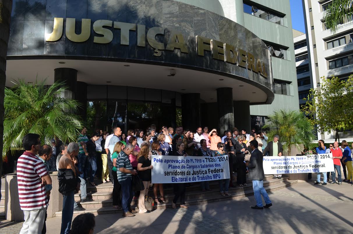 Servidores da Justiça Federal do Paraná fizeram uma paralisação na tarde desta terça-feira (24) em frente à sede da instituição, no bairro Ahú, em Curitiba. Os funcionários reivindicam melhores condições de trabalho e reposição salarial para a classe.