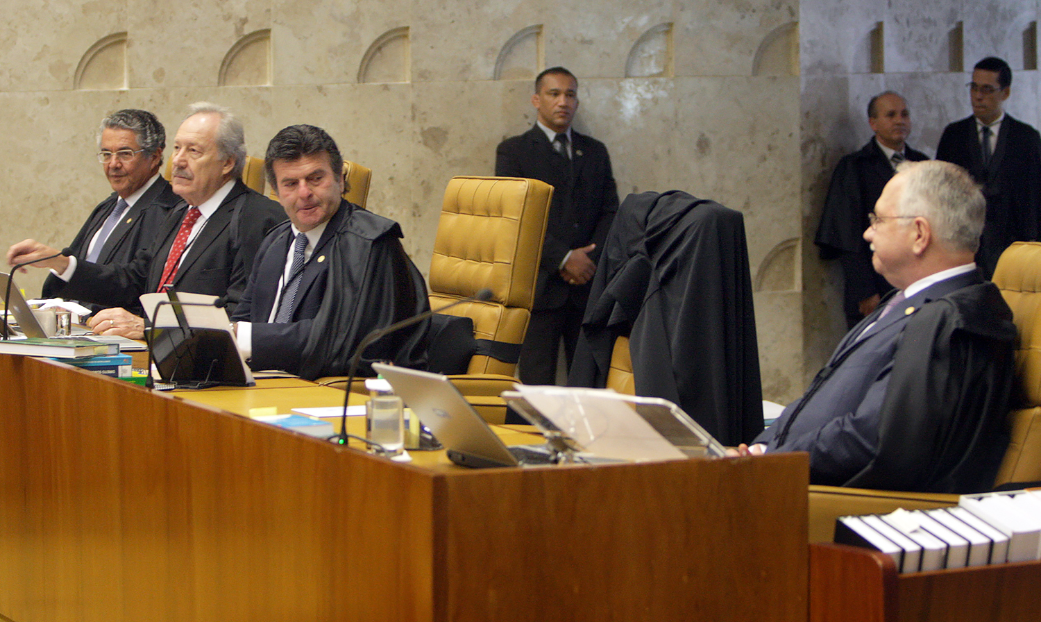 Os funcionários do gabinete de Teori Zavascki assistiram à cerimônia inaugural. O juiz Márcio Schiefler Fontes, juiz auxiliar do gabinete do ministro, que atuava na análise dos processos ligados à Operação Lava Jato, recebeu alguns cumprimentos antes da sessão começar.