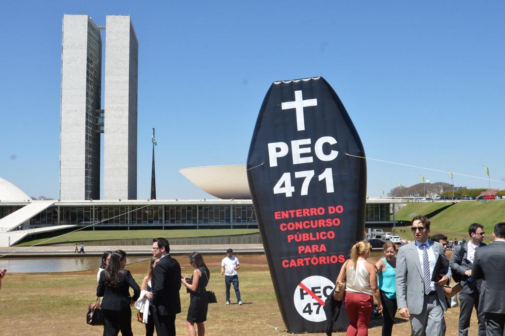 No caixão constava a inscrição “PEC 471, enterro do concurso público para cartórios”.