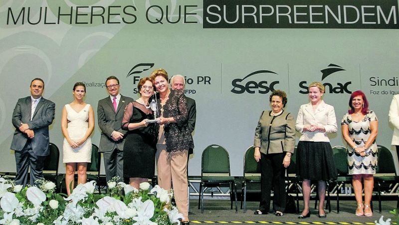 Homenageada ontem em Foz do Iguaçu como "Expoente Máximo na Política da Nação", durante a sétima edição do Prêmio Mulher Empreendedora, oferecido pelo Sistema Fecomércio do Paraná, Dilma criticou a discriminação que as mulheres ainda sofrem no país. E elogiou a disposição das brasileiras, que, quando enfrentam problemas, vão até o fim para enfrentá-los.