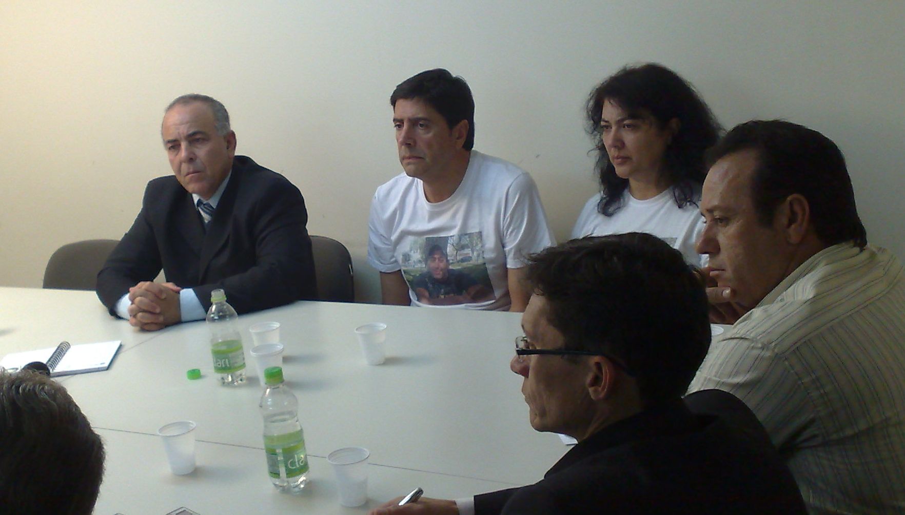 O advogado Elias Mattar Assad (de terno e gravata) ao lado dos pais de Gilmar Yared durante a reunião da Comissão de Segurança da Câmara Municipal de Curitiba (Foto: João Varella / Gazeta do Povo) Use este espaço apenas para a comunicação de erros