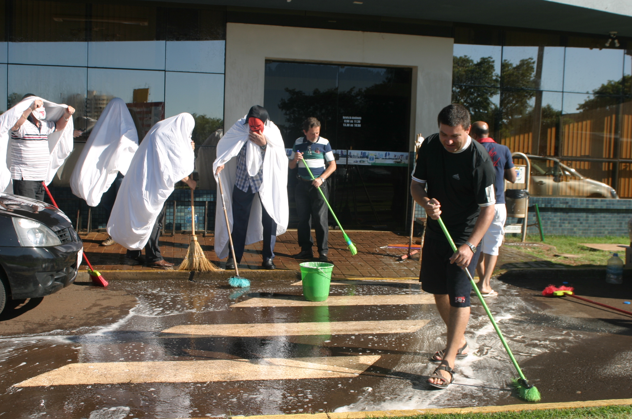 Um grupo de manifestantes lavou a entrada do prédio da Câmara de Vereadores de Cascavel na manhã deste sábado. O protestoé contra as suspeitas de corrupção envolvendo vereadores que são investigados pelo Ministério Público (MP). Na terça-feira (6), uma operaçãodo Grupo de Atuação Especial de Combate ao Crime Organizado (Gaeco) cumpriu mandados de busca e apreensão nas residências de três vereadores.