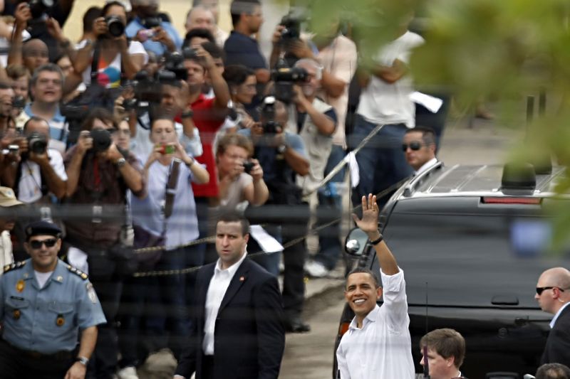 Antes de ir embora, o americano surpreendeu ao sair da sede da Escola Odylo Costa Neto e ao caminhar alguns passos até o meio da Rua Israel. Dali, acenou por cerca de 20 segundos a uma multidão posicionada em lajes e sacadas de casas da rua. A reação foi uma explosão de euforia, que lembra a histeria com que são recebidos astros da música pop. Para os moradores, a meia hora de Obama na Cidade de Deus foi ?histórica?.