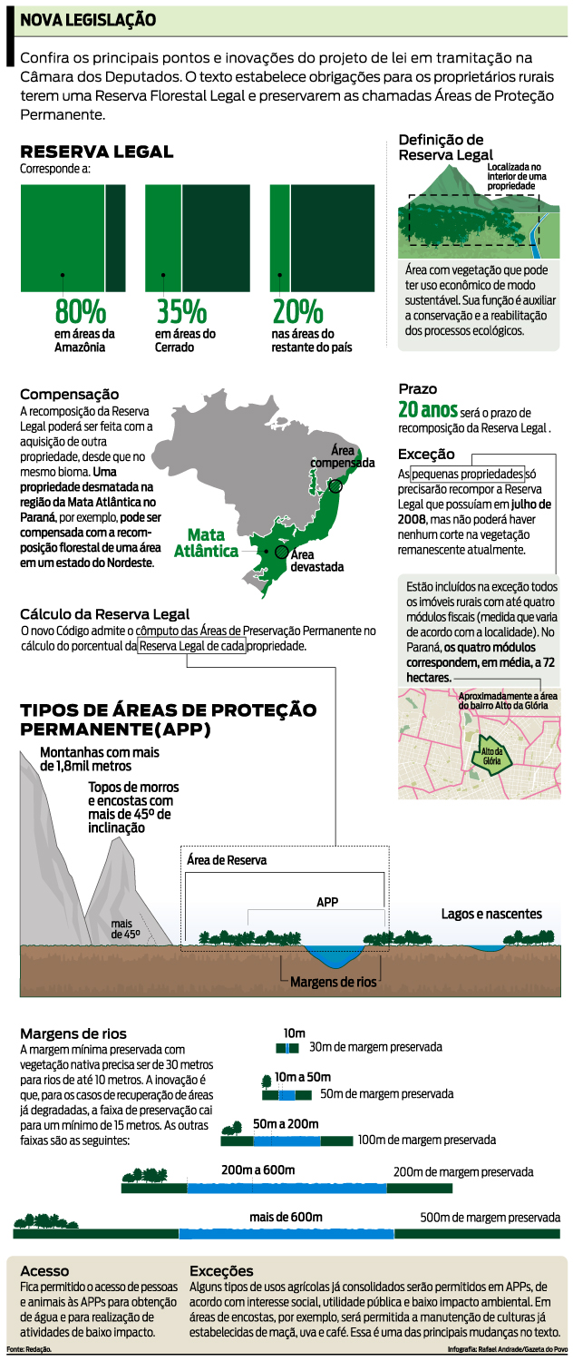 No acordo anunciado por Vaccarezza, por volta das 21h, o governo abria mão de tentar alterar um dos itens que causou maior divergência no texto do relator Aldo Rebelo (PC do B-SP): a exigência de recomposição da reserva legal para o pequeno produtor. No caso das Áreas de Preservação Permanente (APPs), o acordo previa que o governo regulamentasse por decreto os cultivos permitidos em margens de rios.