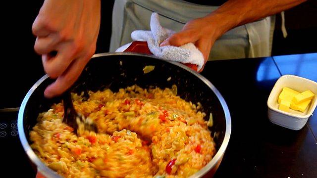 Para esta receita de risoto, um dos segredos é que a cebola esteja picada menor do que o grão de arroz. Além disso a ‘mantecatura” – processo de mexer vigorosamente o risoto - é o que vai garantir a cremosidade do preparo.