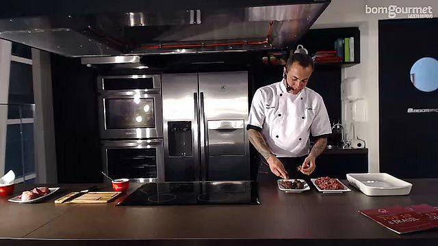 A Chef João Mayer, que comanda a cozinha do Guiolla Hamburgueria Gourmet, ensinou no Estúdio Bom Gourmet Pátio Batel o preparo de um hambúrguer de costela desfiada servido no pão crocante com queijo, maionese caseira verde e cebola roxa.