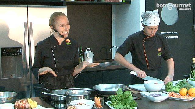 A Chef Gabriela Carvalho foi até o Estúdio Bom Gourmet Pátio Batel, ensinar o preparo de Peixe de Toledo com Vinagrete crocante de talos orgânicos e tubérculos da estação.