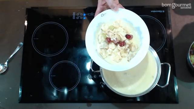 Beto Madalosso e Wellington Almeida ensinam os segredos do Agnolotti Vicenza, massa artesanal recheada com queijo emmental, acompanhada de molho de queijo e finalizada com uvas e amêndoas torradas, receita vencedora na categoria Prato Principal no Prêmio Bom Gourmet 2016.
