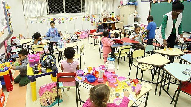 Enquanto os pais prestam atenção nos professores, cerca de 130 crianças de até 10 anos ficam sob os cuidados de educadoras concursadas da rede municipal.