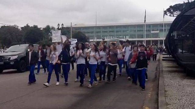 Estudantes tentam conversar com governador Beto Richa sobre problemas em suas escolas e são barrados na porta do Palácio Iguaçu.