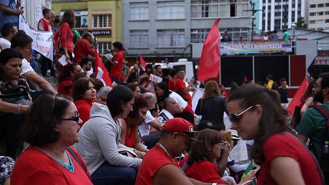 Manifestantes fazem atos a favor do governo e contra o impeachment na praça Santos Andrade.