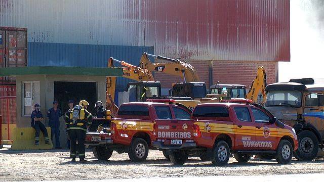 Exército, PM, Defesa Civil e Corpo de Bombeiros lutam desde terça-feira (24) contra reação química que alimenta o incêndio sem chamas em depósito de fertilizantes de São Francisco do Sul (SC).