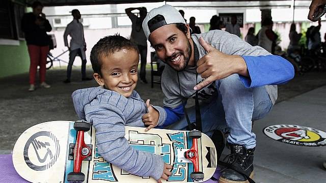 Projeto do skatista Heverton de Freitas permite não só diversão a crianças especiais, mas também gera coragem para elas buscarem pequenas conquistas do dia a dia, como se levantar e caminhar.