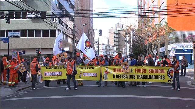 Entre as reivindicações estão a redução da carga horária de trabalho, aumento dos salários e mais qualidade na saúde, educação e transporte coletivo. Manifestantes saíram da João Negrão e caminharam pela cidade bloqueando o trânsito.