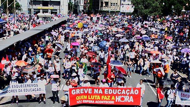 Milhares de professores e servidores públicos partiram das praças Rui Barbosa e Santos Andrade rumo ao Centro Cívico. Docentes e governo negociam pela terceira vez o fim da greve.