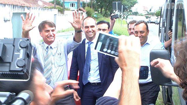 O deputado federal Jair Bolsonaro esteve em Curitiba acompanhado de Fernando Francischini e passou pela Polícia Federal, onde manifestantes faziam ato de apoio à Polícia Federal depois da deflagração da Operação Aletheia.