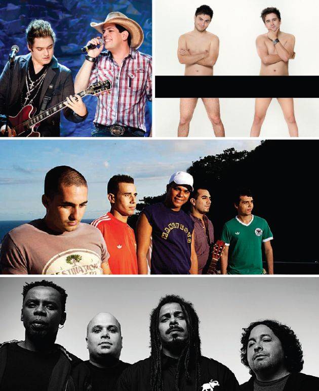 A dupla Fernando & Sorocaba, que se apresenta no Café Curaçao. Bruninho & Davi na capa do CD Proibido para Menores. O grupo Sorriso Maroto, que toca no Hyddra. O Rappa, atração de sábado do Curaçao Guaratuba