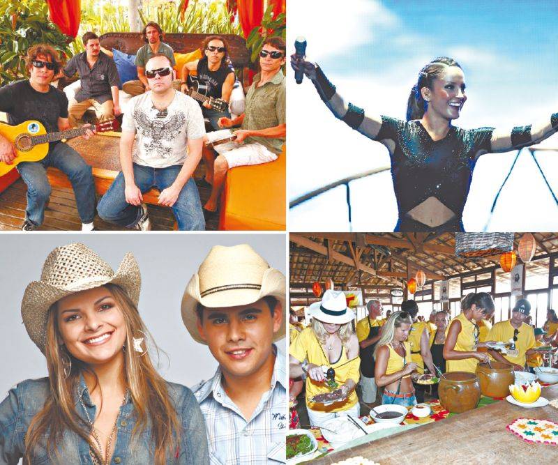 Em sentido horário: Lunara & Vitor Fontana, que serão relembrados no Victoria Villa. A banda catarinense Dazaranha, que toca hoje em Caiobá. Claudia Leitte, que estará amanhã no Café Curaçao. O Feijão da Fundação, que rola amanhã no Curaçao