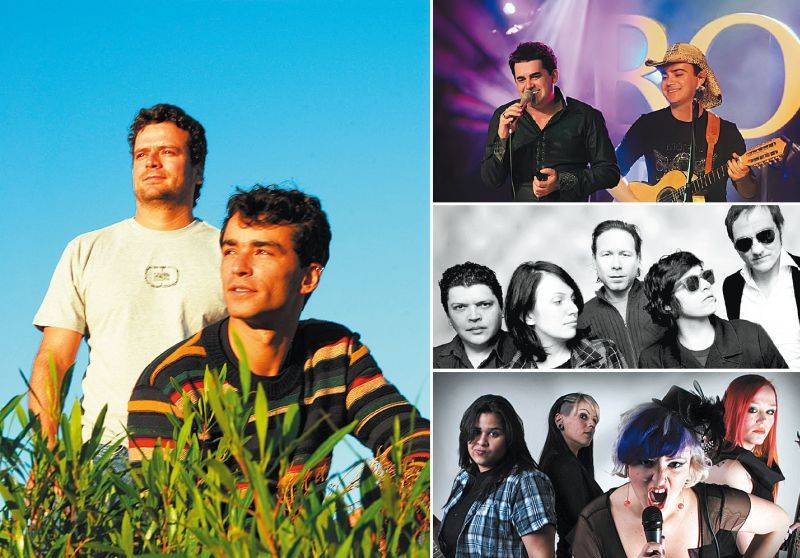 Em sentido horário: Leozinho & Paciornik, que tocam hoje na Awake. Alvaro e Daniel, que lançam CD no Victoria Villa. A banda Easy Players, atração do Wonka. A Punkake, que se apresenta na Celebrity Party
