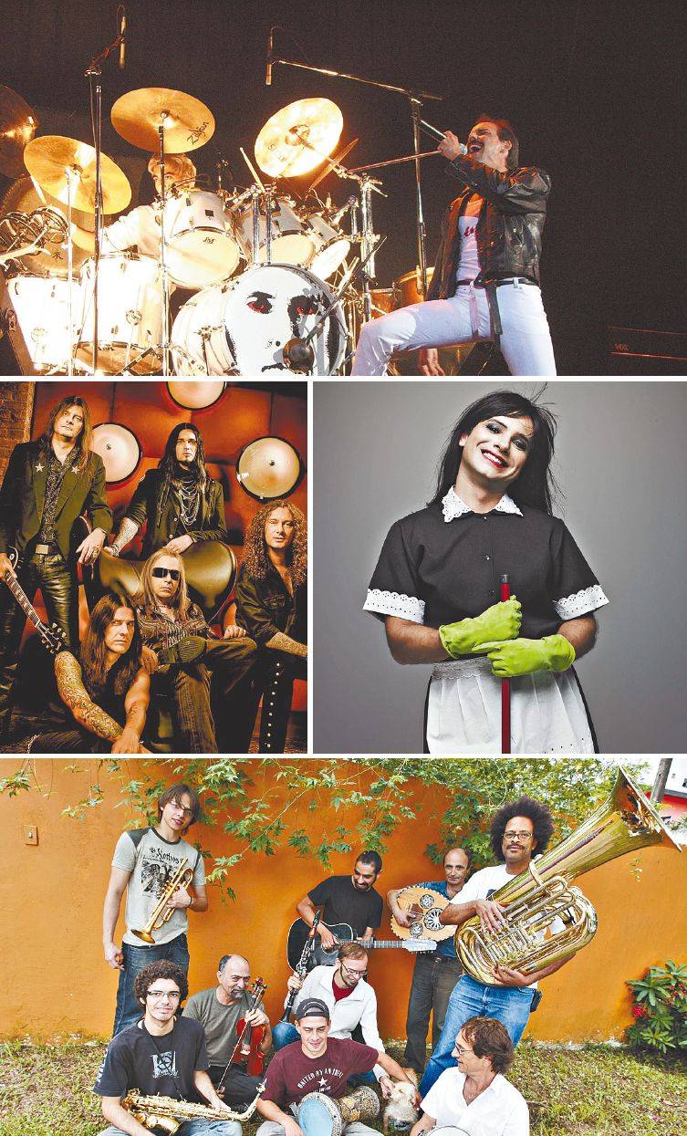 O vocalista Pablo Padín, do God Save The Queen, encarna Freddie Mercury. A banda alemã Helloween, que se apresenta no Curitiba Master Hall. Marco Luque na pele da diarista Mary Help. O grupo Klezmorim, que toca no Café Parangolé