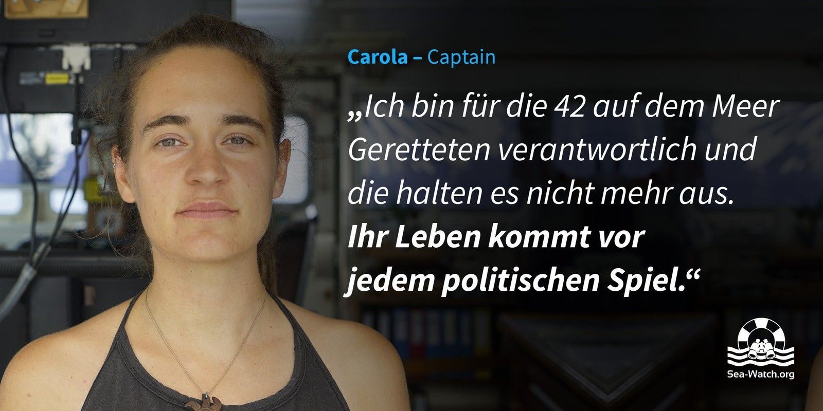 Não se trata da capitã de um navio qualquer que, ao fazer suas atividades rotineiras, deparou-se com pessoas em perigo e resolveu agir. A história é outra. Carola Rackete é a capitã da embarcação de uma ONG chamada Sea-Watch, dedicada a patrulhamento e salvamento de refugiados que tentam atravessar o Mar Mediterrâneo rumo à Europa.