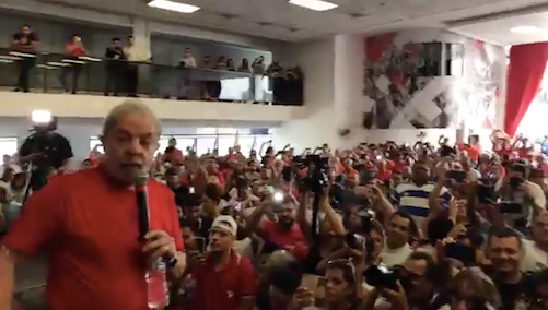O ex-presidente Luiz Inácio Lula da Silva participou de um ato no Sindicato dos Metalúrgicos do Grande ABC, em São Bernardo do Campo, nesta quarta-feira (24), ao mesmo tempo em que seu recurso era julgado pelo Tribunal Regional Federal da 4a Região em Porto Alegre, e caprichou nas críticas a adversários de difícil identificação – que chamou de “eles” em diversos momentos de seu discurso.