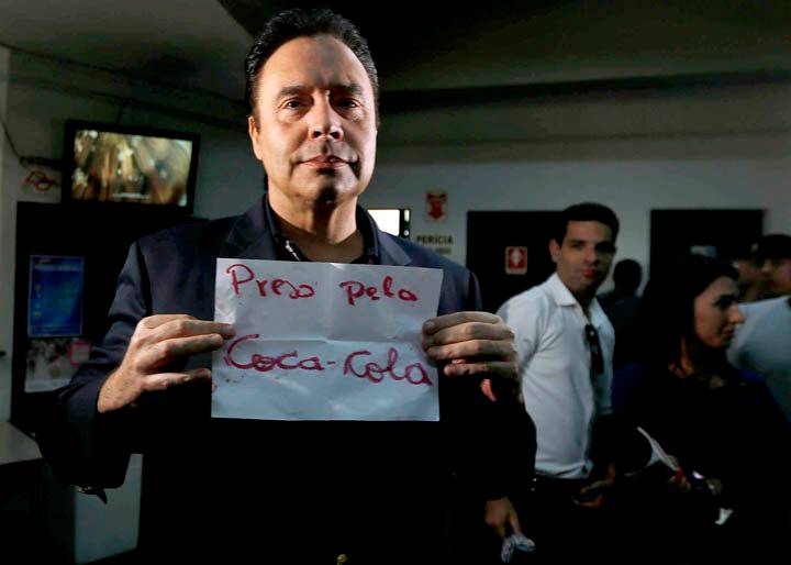 A briga do dono da Dolly com a Coca-Cola jamais terminou. Se estendeu pela mídia, pela Justiça, pelo CADE e tem mais um capítulo hoje, quando o empresário, preso por dívidas de R$ 4 bilhões com o INSS, se deixou fotografar com um papel em que escreveu com batom: “Preso pela Coca-Cola”.
