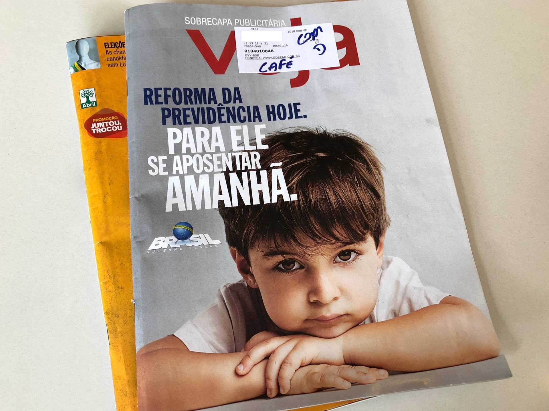 A publicidade do governo federal foi publicada na sobrecapa da última edição das revistas Veja, Época, Istoé e Istoé Dinheiro encaminhadas a assinantes. A peça exibe a foto de uma criança ao lado da marca do governo federal e da frase “Reforma da Previdência hoje. Para ele se aposentar amanhã”.