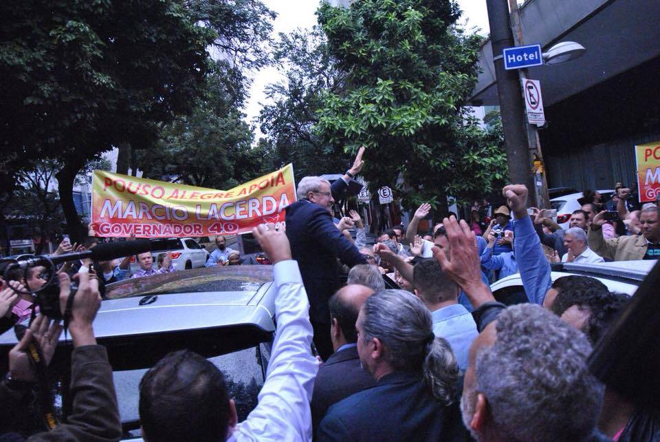 Marcio Lacerda, tido como uma terceira via frente ao polarizado cenário PSDB-PT, ao final da confusão, falou com jornalistas e apoiadores, bradando ser um momento histórico para Minas Gerais.
