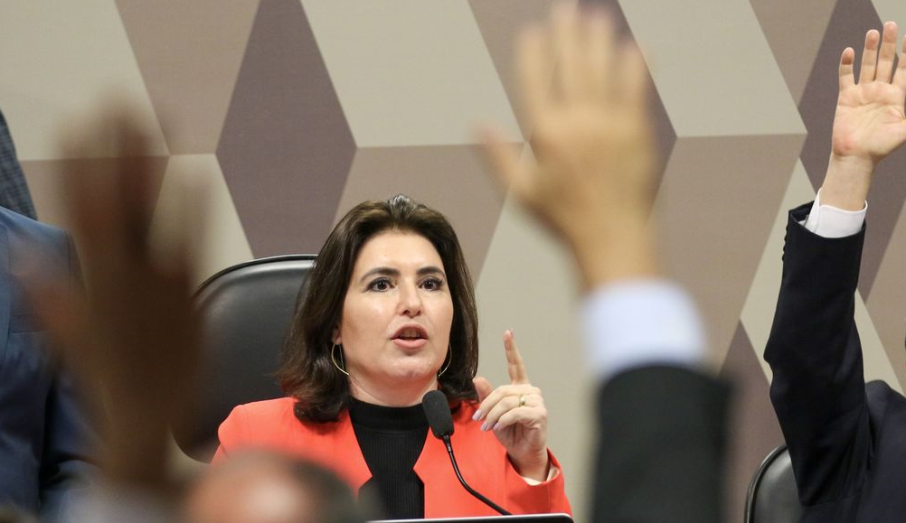 Por falar em vacina, a senadora Simone Tebet, que teve uma atuação lá na CPI da Covid que prejudicou a saúde de muita gente, porque foi uma das que falavam que não existe tratamento para a Covid, e também foi uma que lá no impeachment da Dilma foi a favor do impeachment, trabalhou muito, tá tendo dificuldade.