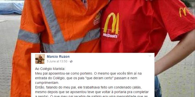 Desde o último domingo (4), as redes sociais têm debatido fortemente o caso “Se nada der certo”, protagonizado pela Instituição Evangélica de Novo Hamburgo, em que crianças participaram de um “recreio temático” com roupas de gari e atendentes de rede de fast food (Leia mais no blog Caixa Zero). Vendo o fato, o consultor Marcio Ruzon, 38, resolveu se pronunciar.
