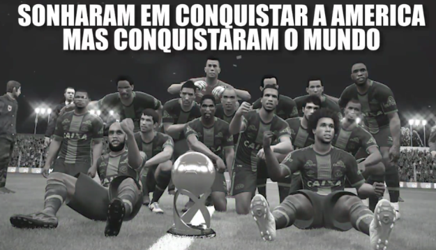 Nesta semana, o mundo todo parou diante da tragédia de Medellin, que acabou na morte da delegação de atletas da Chapecoense e profissionais da imprensa. A primeira partida do jogo entre a Chape e o Atlético Nacional aconteceria nesta quarta, e o internauta Mano De Carli prestou uma homenagem justa e emocionante: ele simulou, com os amigos, a partida entre os clubes no game PES2017.