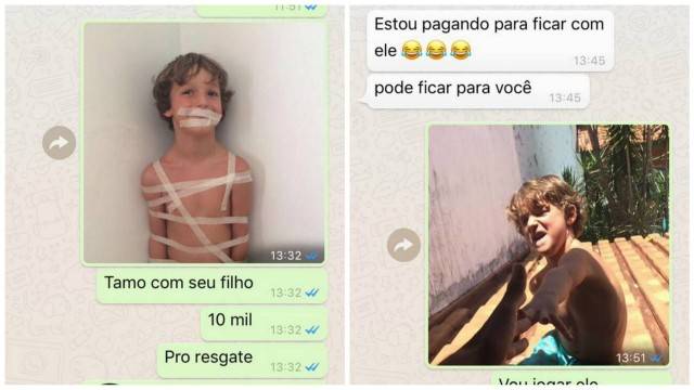 Fita crepe como corda, saco de lixo e até ressurreição. Nesta semana, a estudante de jornalismo Pietra Bilek, de Londrina, compartilhou uma série de mensagens de WhatsApp que os seus irmãos Pedro, 16, e Arthur, de 6, enviaram à mãe Cleia no início da semana: a simulação do sequestro do caçula, enquanto a responsável estaria no trabalho.