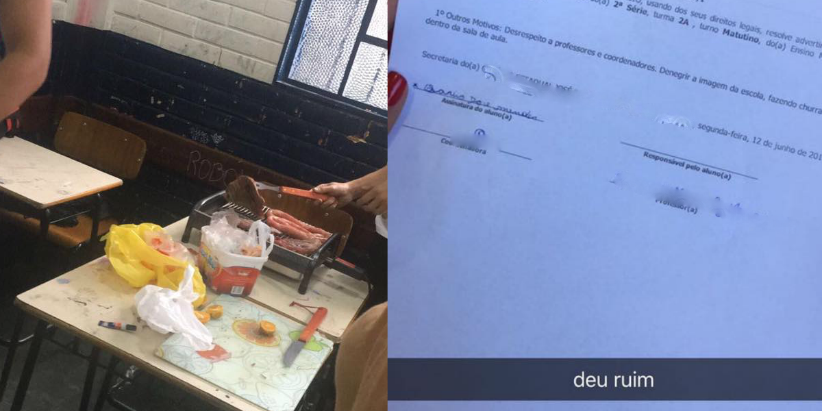 Além disso, contam que os alunos trouxeram a churrasqueira e as carnes dentro de uma caixa, dizendo aos professores que se tratava de material escolar.