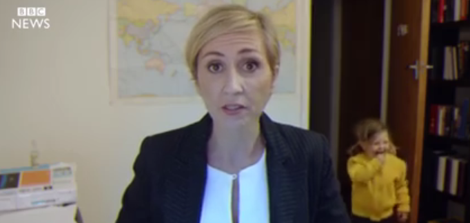 Sucesso na semana passada nas redes sociais, o vídeo viral do correspondente da BBC sendo interrompido por seus filhos durante uma participação ao vivo ganhou uma versão hilária nesta quinta (16) na Nova Zelândia. Os humoristas Jono and Ben, que fazem muito sucesso em um programa do gênero na Oceania e em seu canal no YouTube, recriaram o momento com uma mãe no lugar de Robert Kelly.