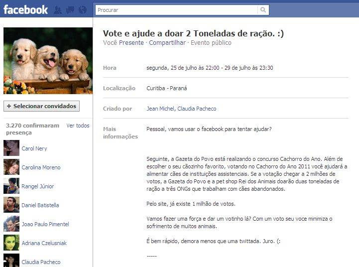 Um usuário do facebook criou um evento para arrecadar votos na rede social, e cerca de 35.000 pessoas já foram convidadas a votar. Os internautas também estão postando no mural dos amigos, o link de votação para que todos participem. No twitter o link que dá acesso à página de votação também já foi divulgado.