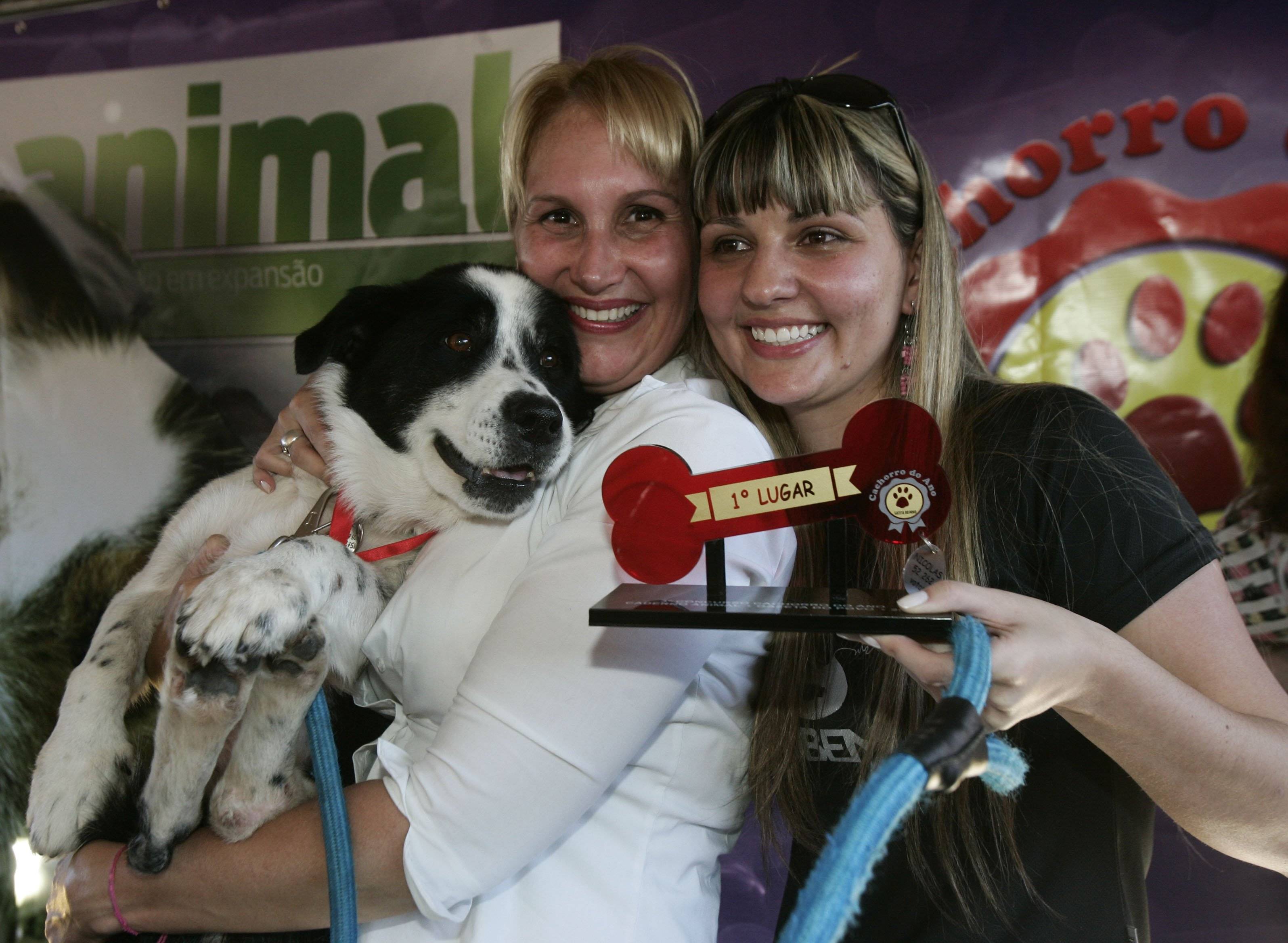 Nicolas, o Cachorro do Ano 2008. Ao lado, Elaine Petrelli e Sheila Schneider, que já cuidaram do pequeno campeão.