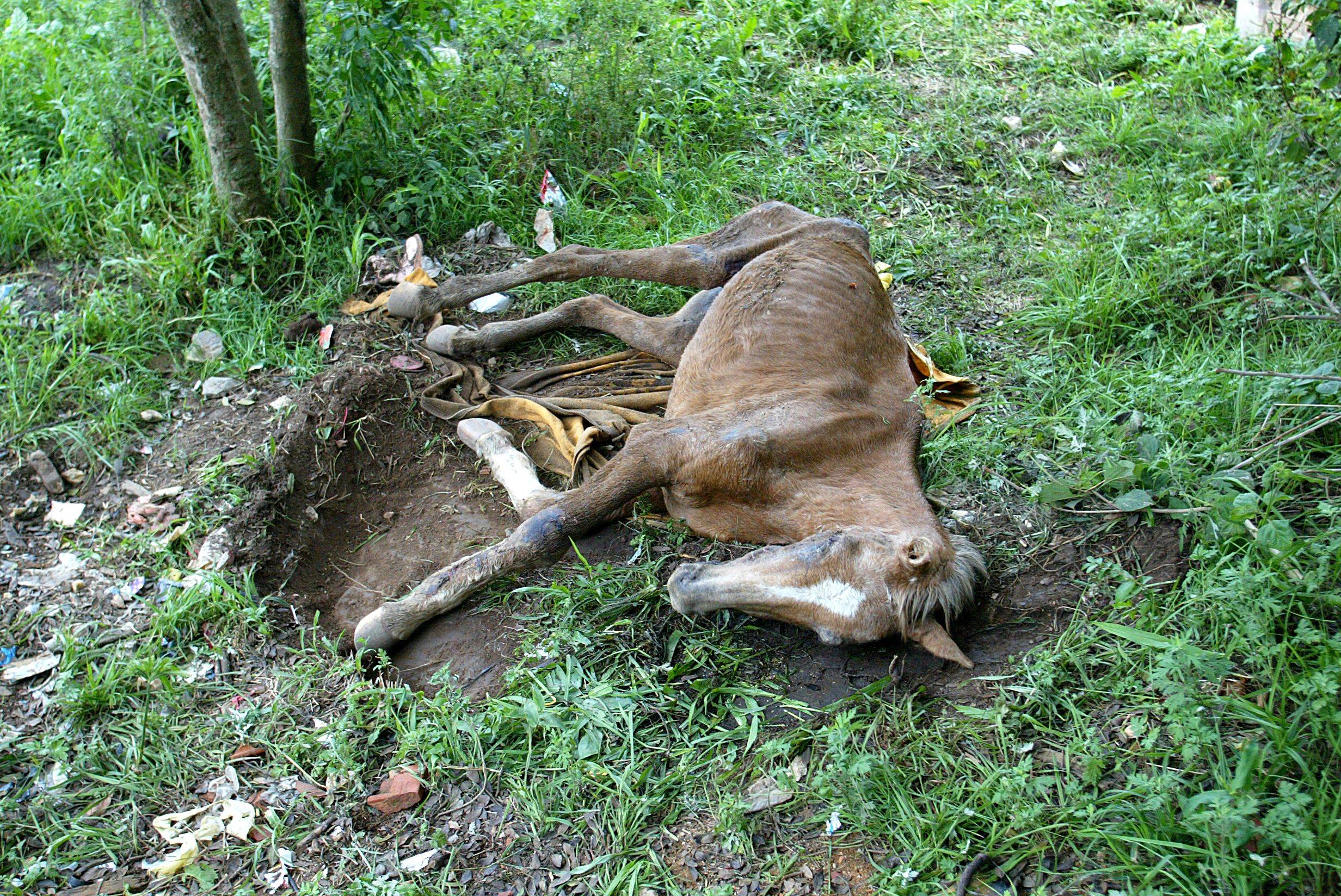 O cavalo que estava abandonado há duas semanas em um terreno em Araucária, como mostrei no blog ontem, foi eutanasiado ontem à noite, por volta das 20h, depois que a Gazeta do Povo publicou matéria. A Secretaria do Meio Ambiente da cidade foi até lá e sacrificou o animal, já que ele não tinha mais chance de cura e estava sofrendo.