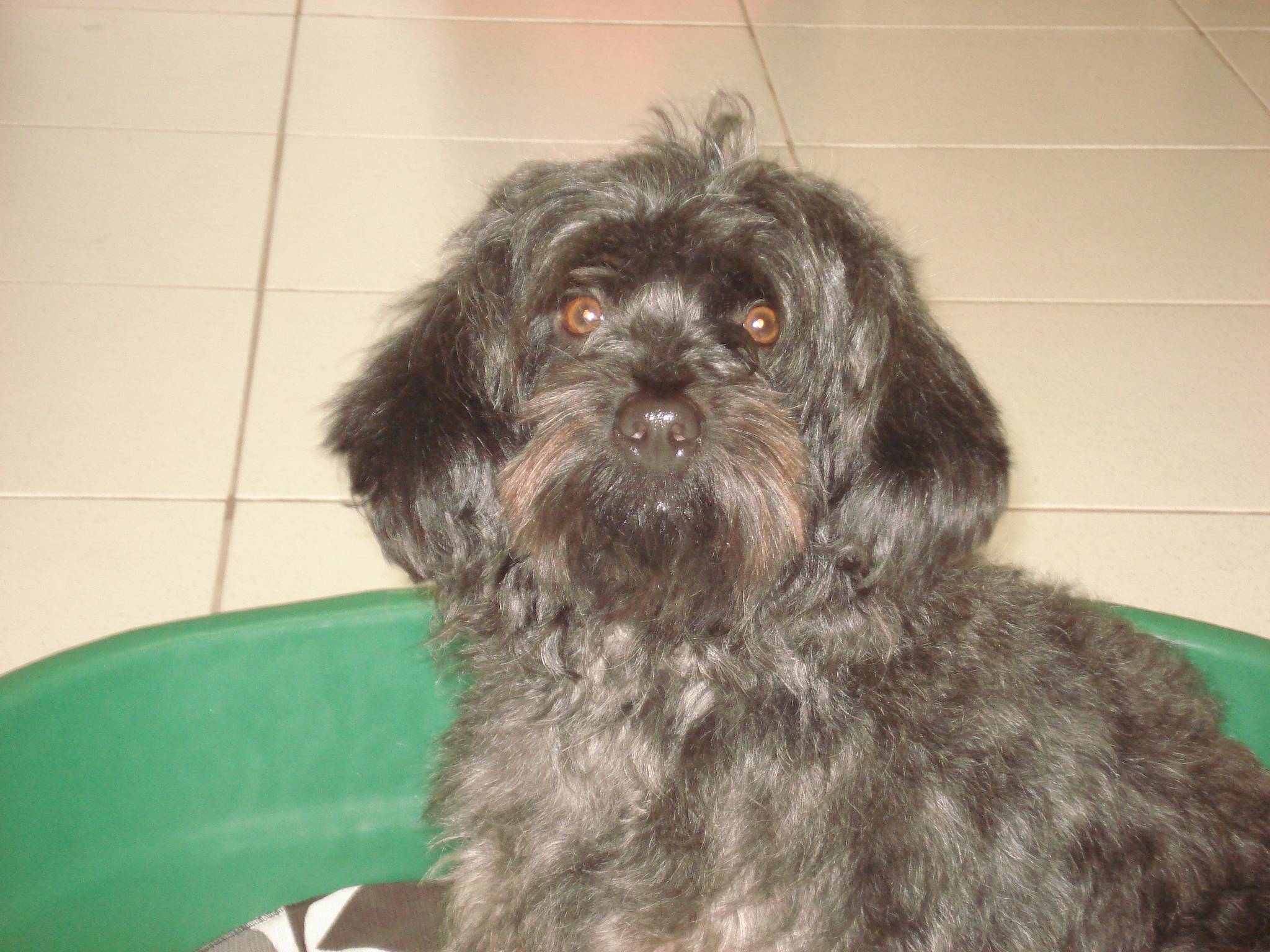 Este cachorrinho foi achado perambulando pelas ruas do Bairro Seminário, no sábado, dia 13. Ele é cinza e preto, pelagem média e aparência entre as raças lhasa apso e poodle.