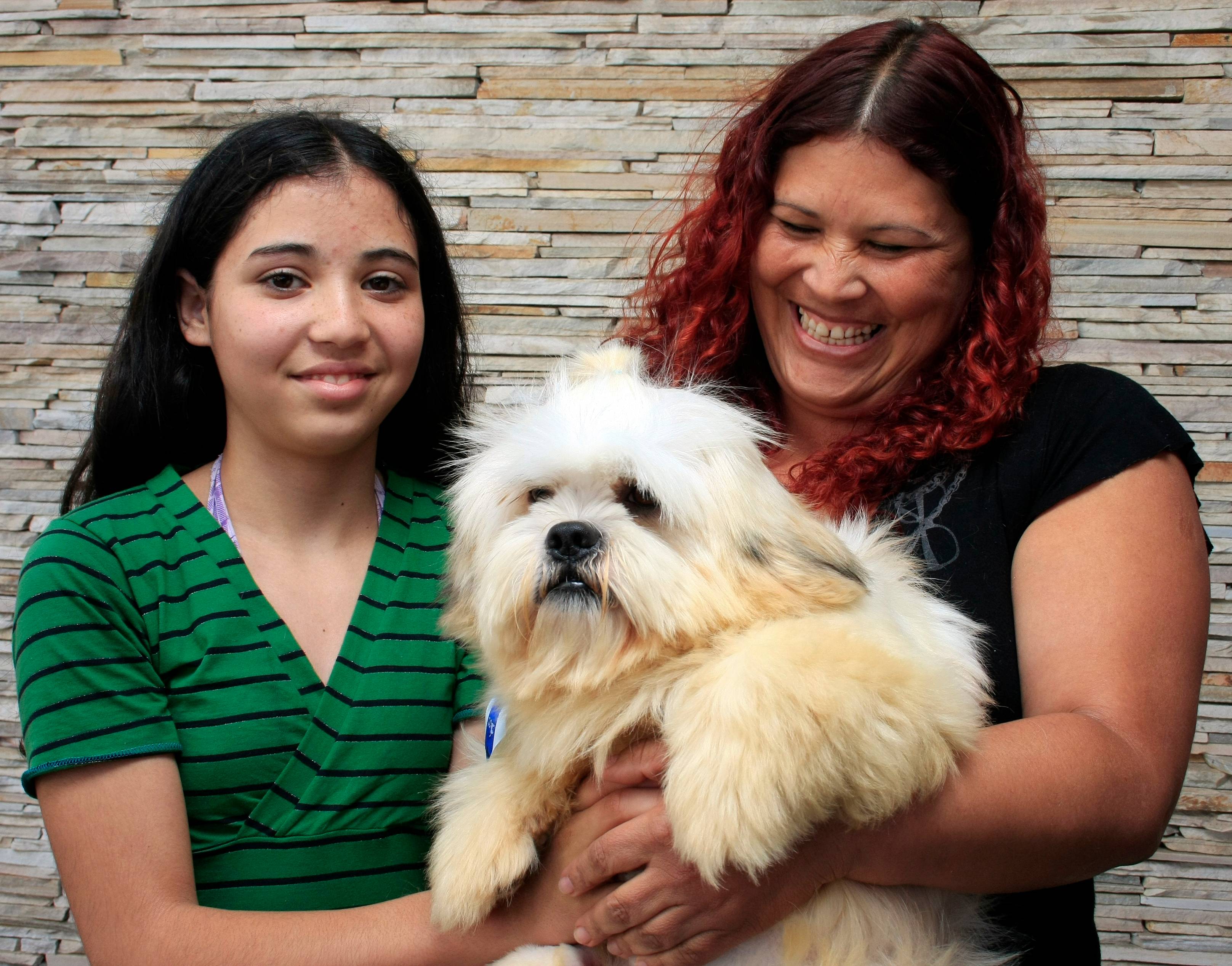 Nilza e a filha Emily com o pequeno Marcelo, o Cachorro do Ano 2009.