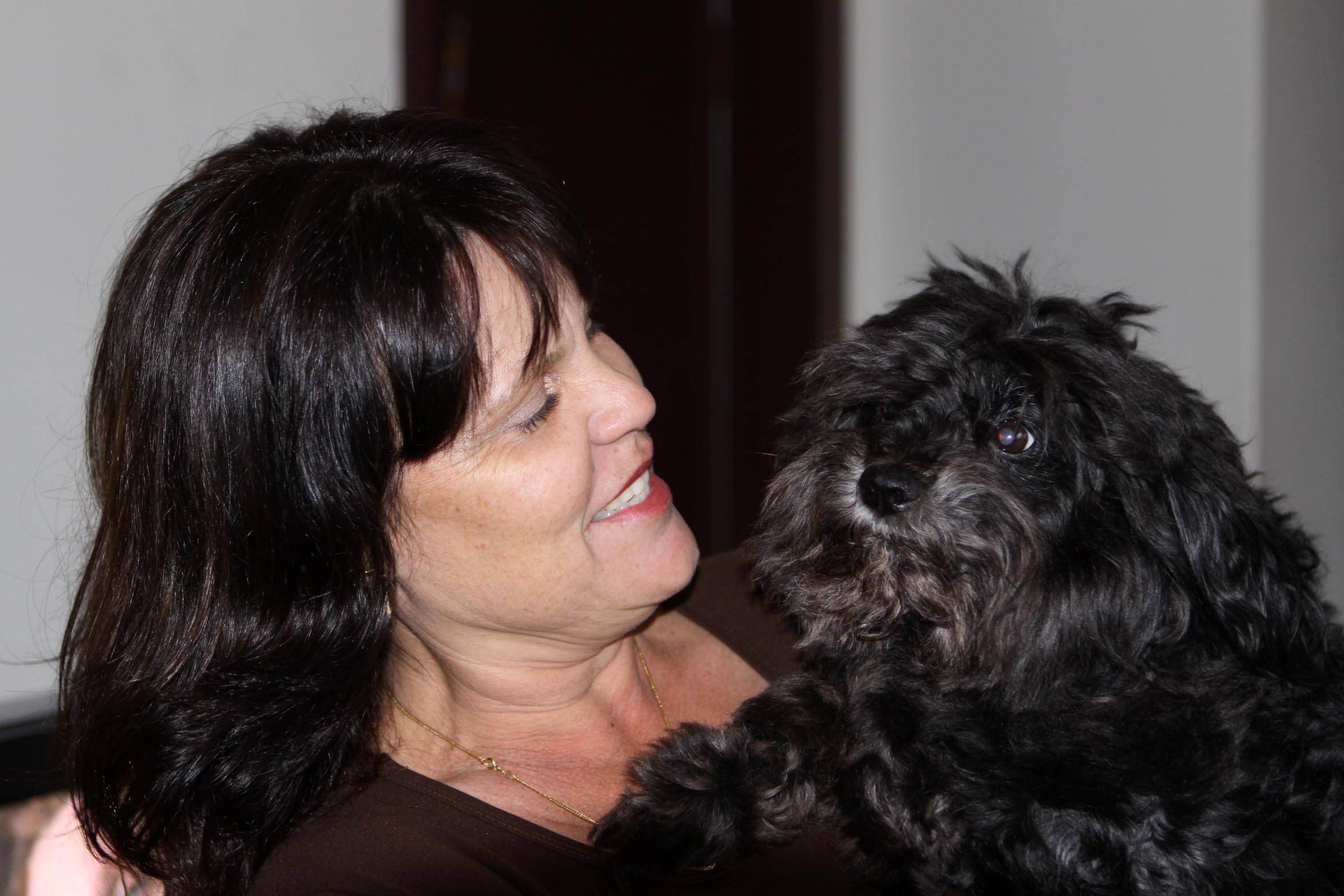 O cão Pixot com a dona, a empresária Adriane Rocha.